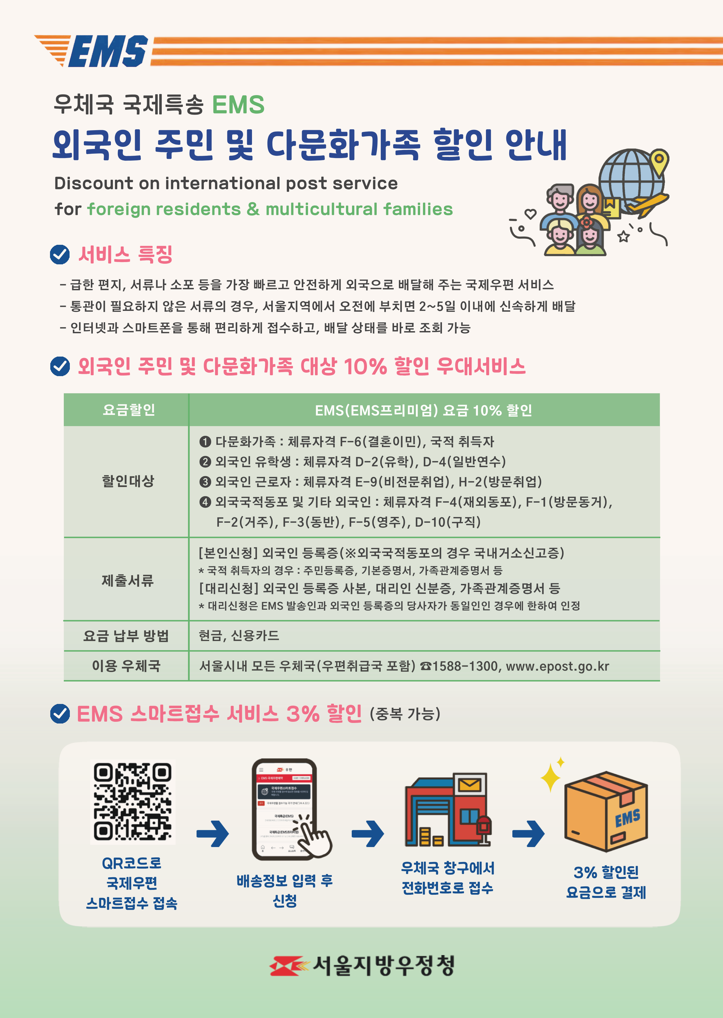 외국인주민 및 다문화가족 국제특급우편서비스(EMS) 요금할인 안내