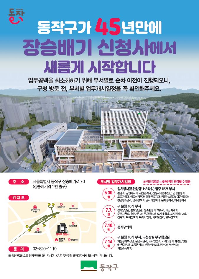 동작구가 45년만에 신청사에서 새롭게 시작합니다.