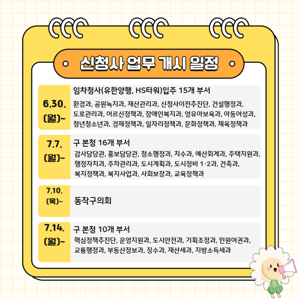 신청사 입주부서 현황 안내(7월 14일 현재)