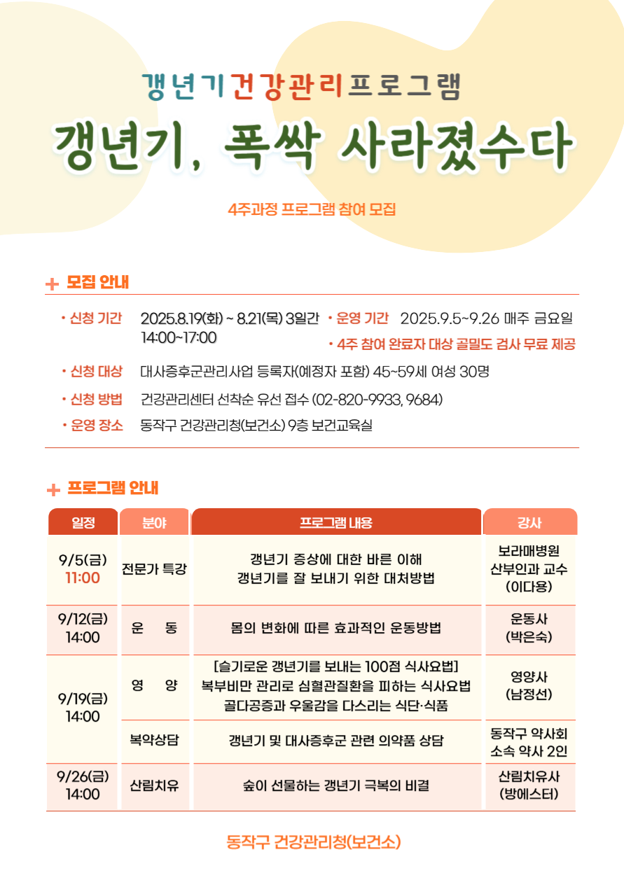 ○문의: 동작구 건강관리센터 02-820-9933, 9684