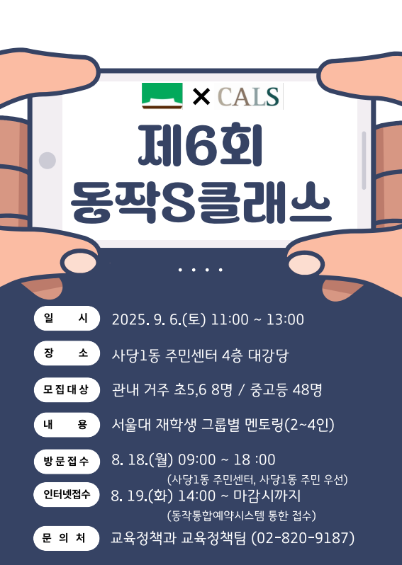 2025년 제6회「동작S-클래스」입시프로그램을 아래과 같이 개최하오니 많은 관심과 신청바랍니다.