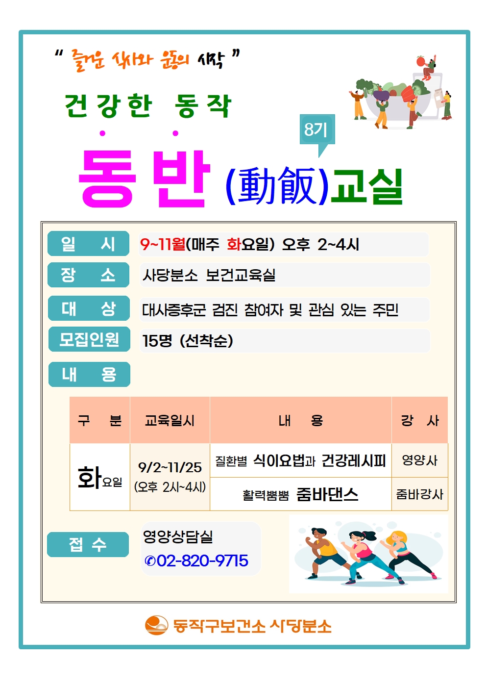 건강한 동작! 동반(動飯)교실 8기 운영안내(모집완료)