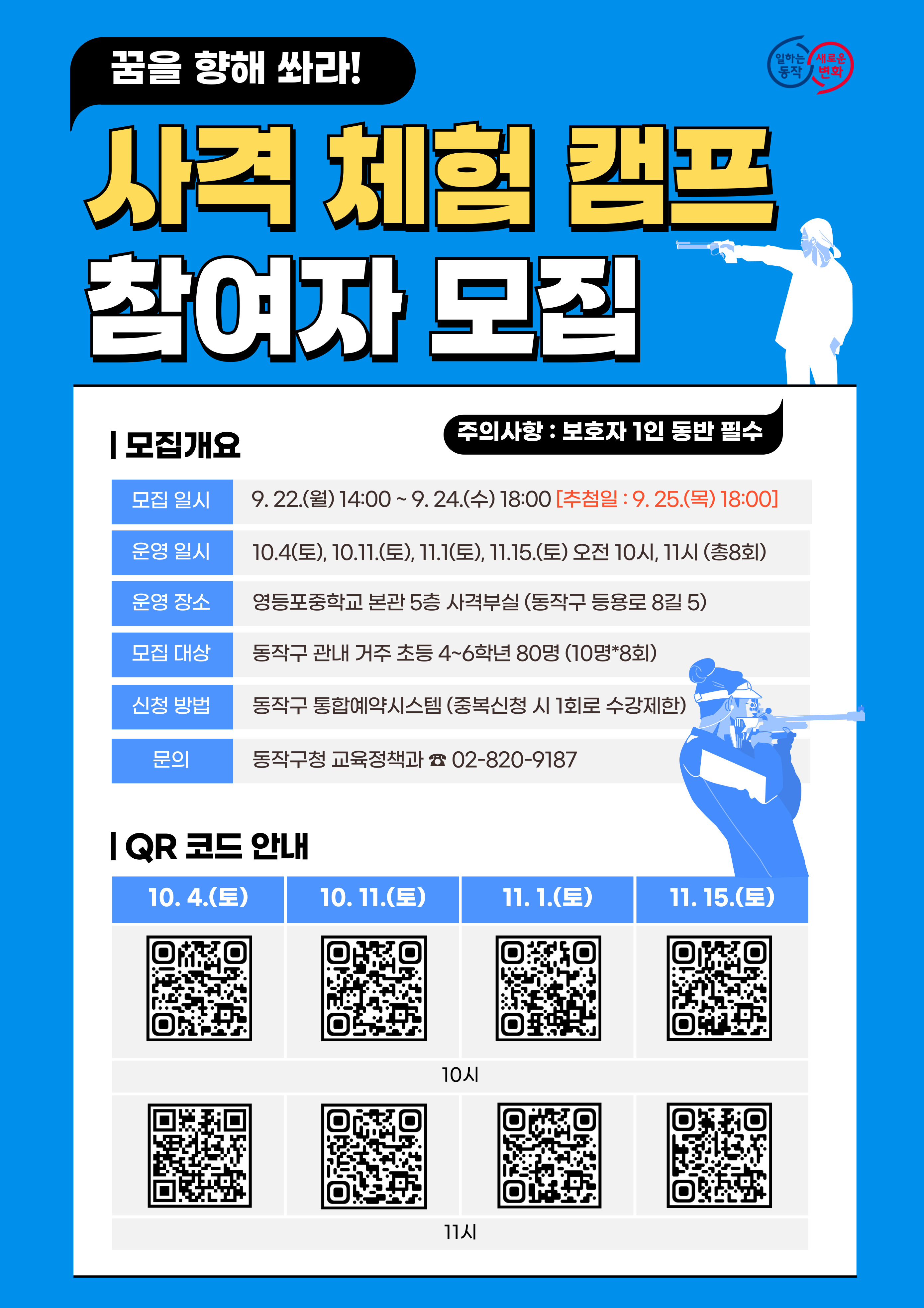 [25.9.22.~9.24.] 동작구-영등포중 사격 체험 캠프 안내 (초등 4~6학년)
