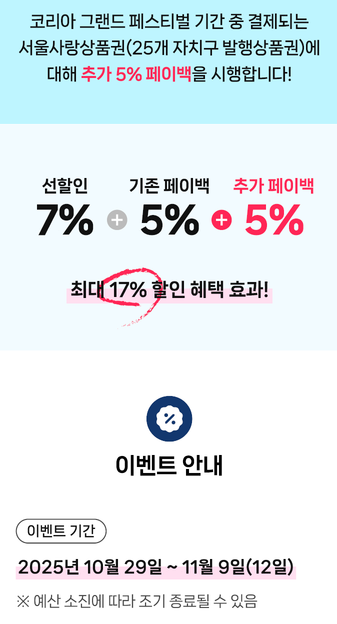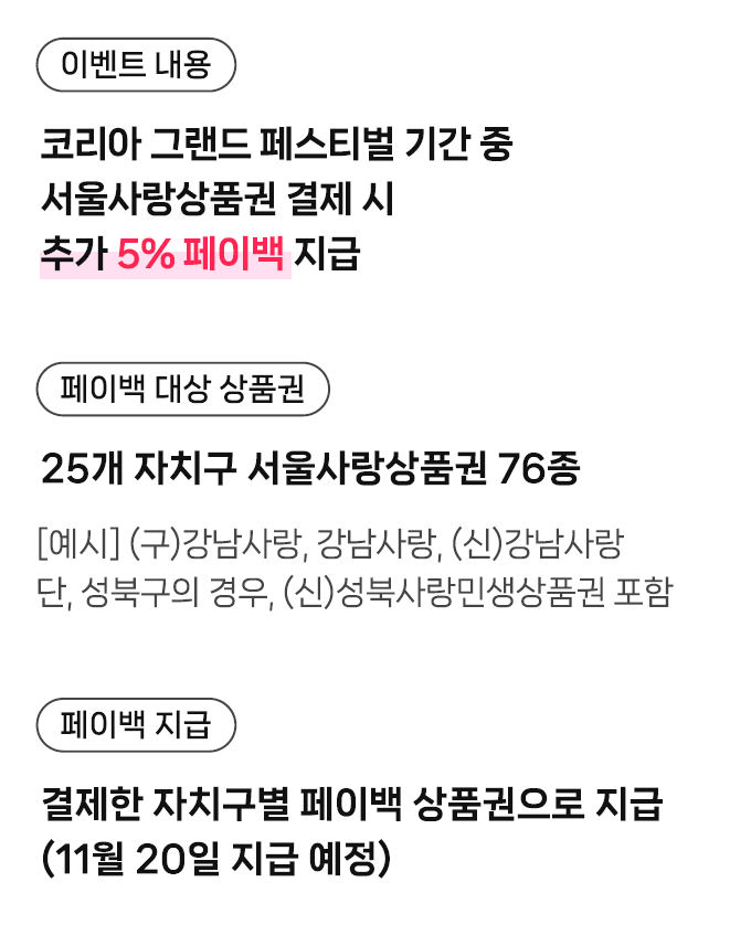 코리아그랜드페스타 기간 중 동작사랑상품권 페이백(5%) 이벤트