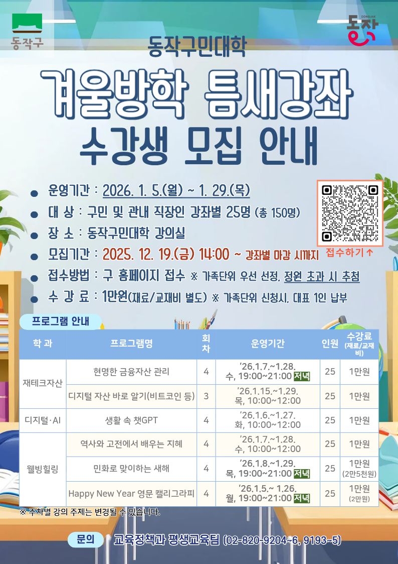 2026년 1월 동작구민대학 겨울방학 틈새강좌 수강생 모집 안내
