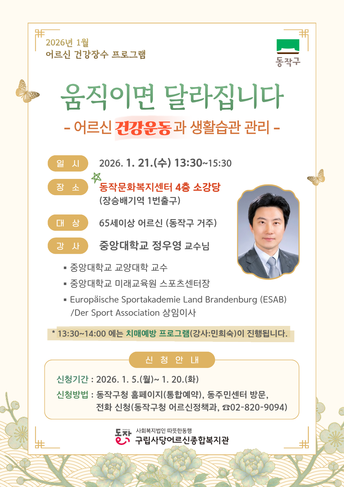- 주 제 : 움직이면 달라집니다 : 어르신 건강운동과 생활습관 관리