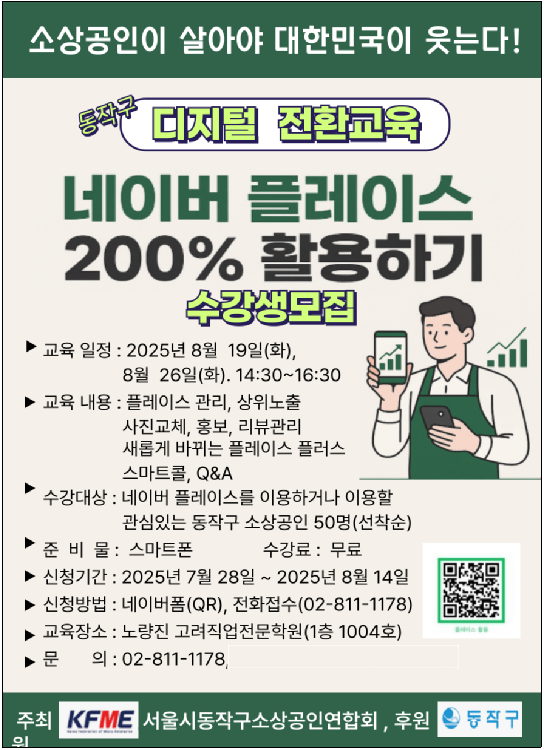 서울시 동작구소상공인연합회에서 소상공인 대상으로 디지털 교육을 실시하여 아래와 같이 안내합니다