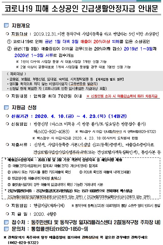 (접수기간연장) 코로나19 피해 소상공인 긴급생활안정자금 안내