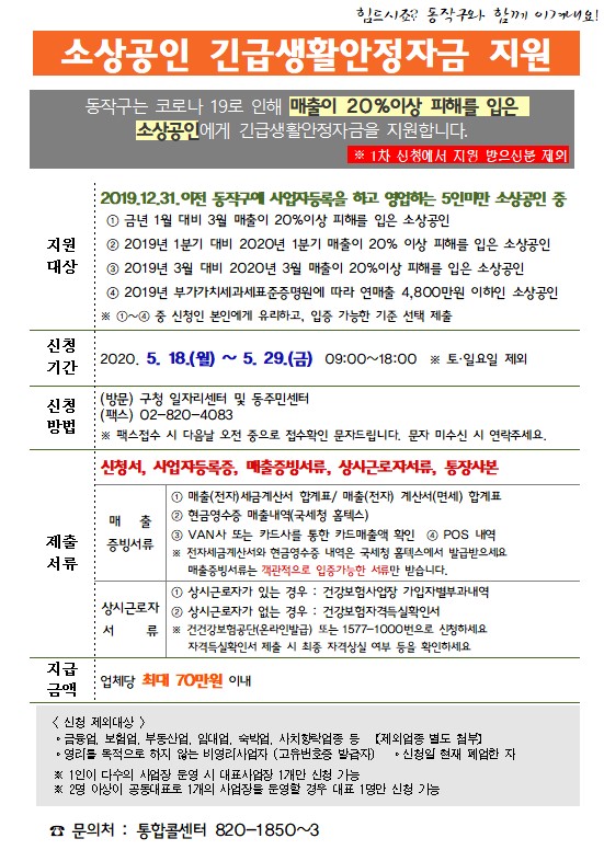 코로나19 피해 소상공인 긴급생활안정자금 2차 접수 안내