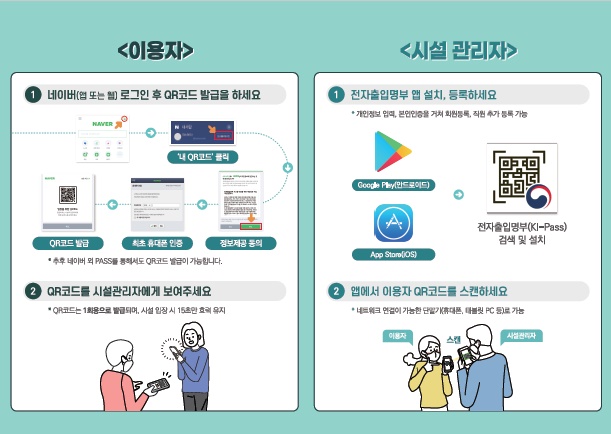 전자 출입명부(QR코드) 활용안내(이용자 및 시설관리자)