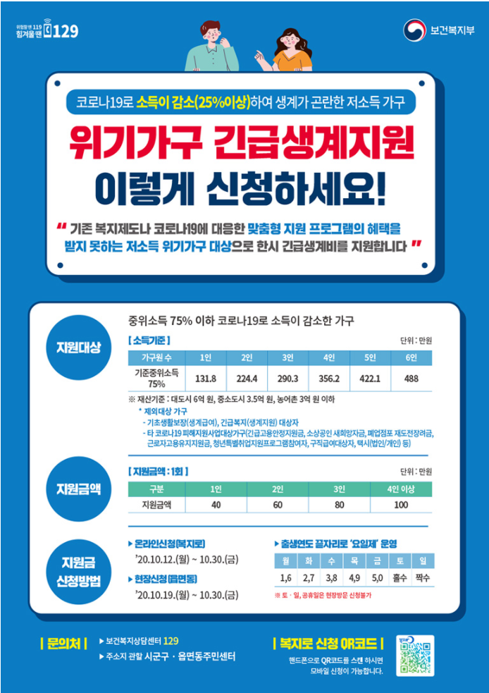 위기가구 긴급생계지원 이렇게 신청하세요