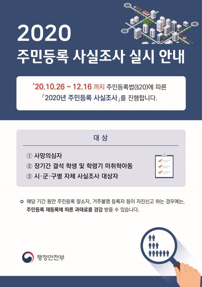 주민등록 자진신고 기간 운영(2020.10.26~12.16)
