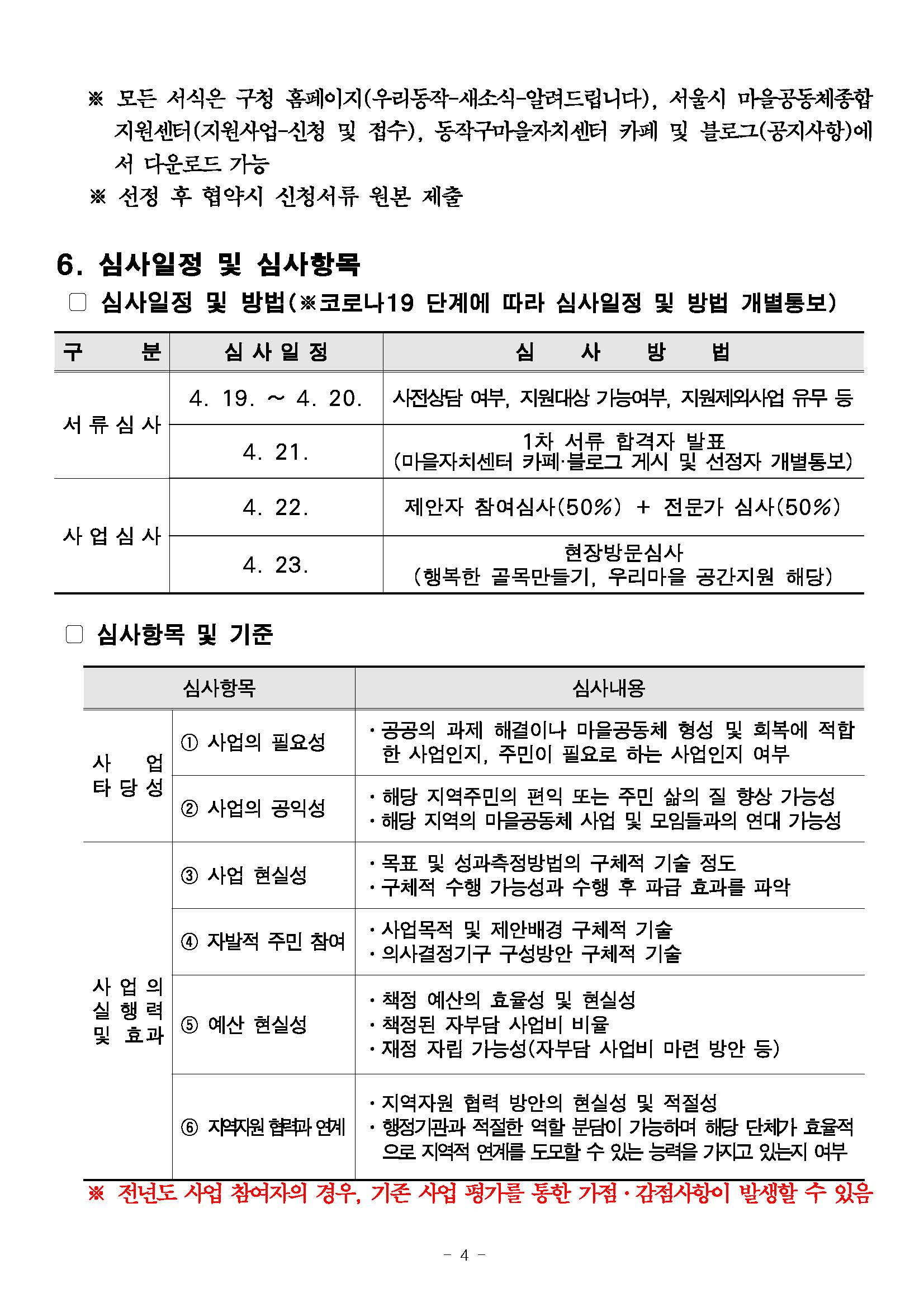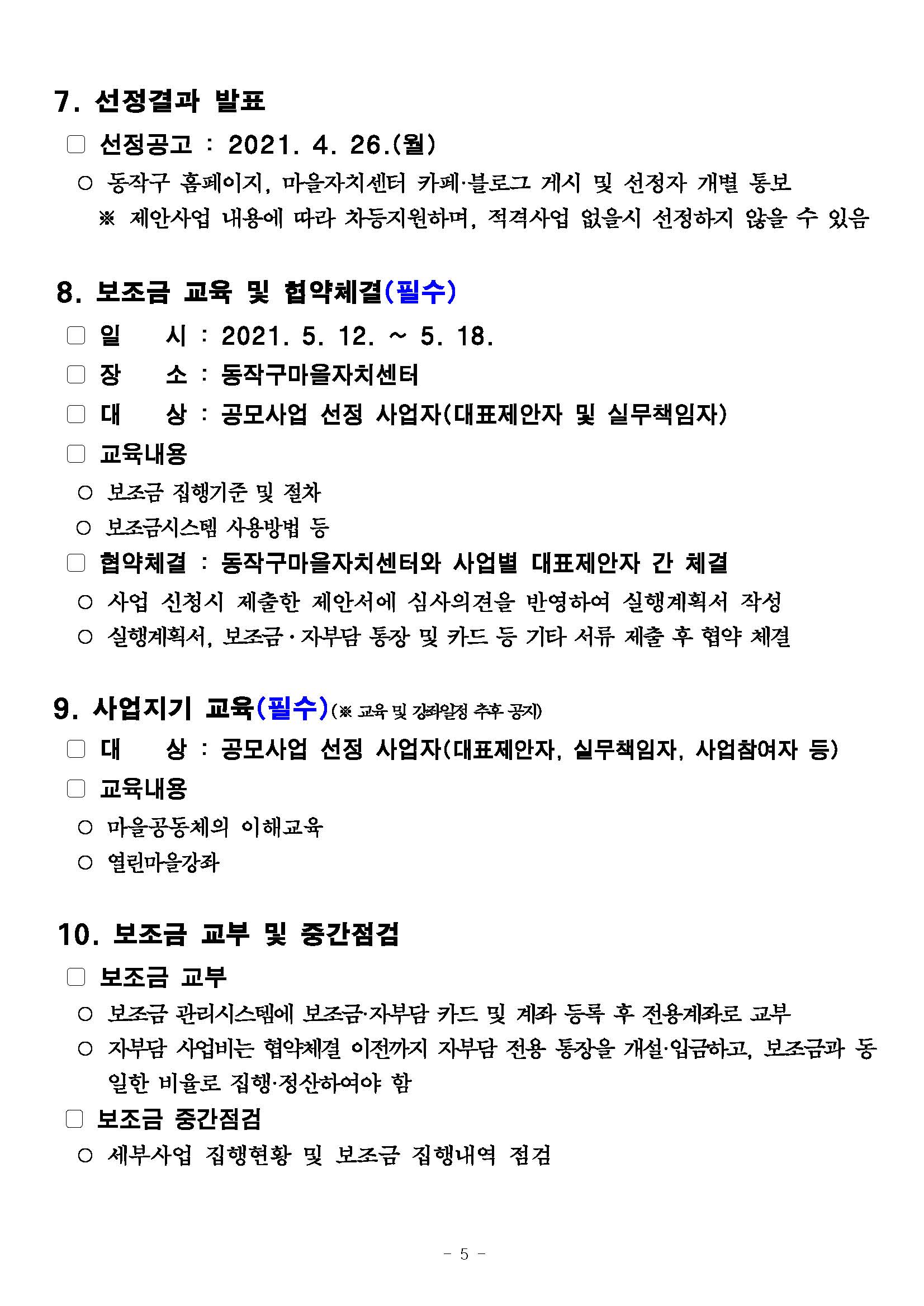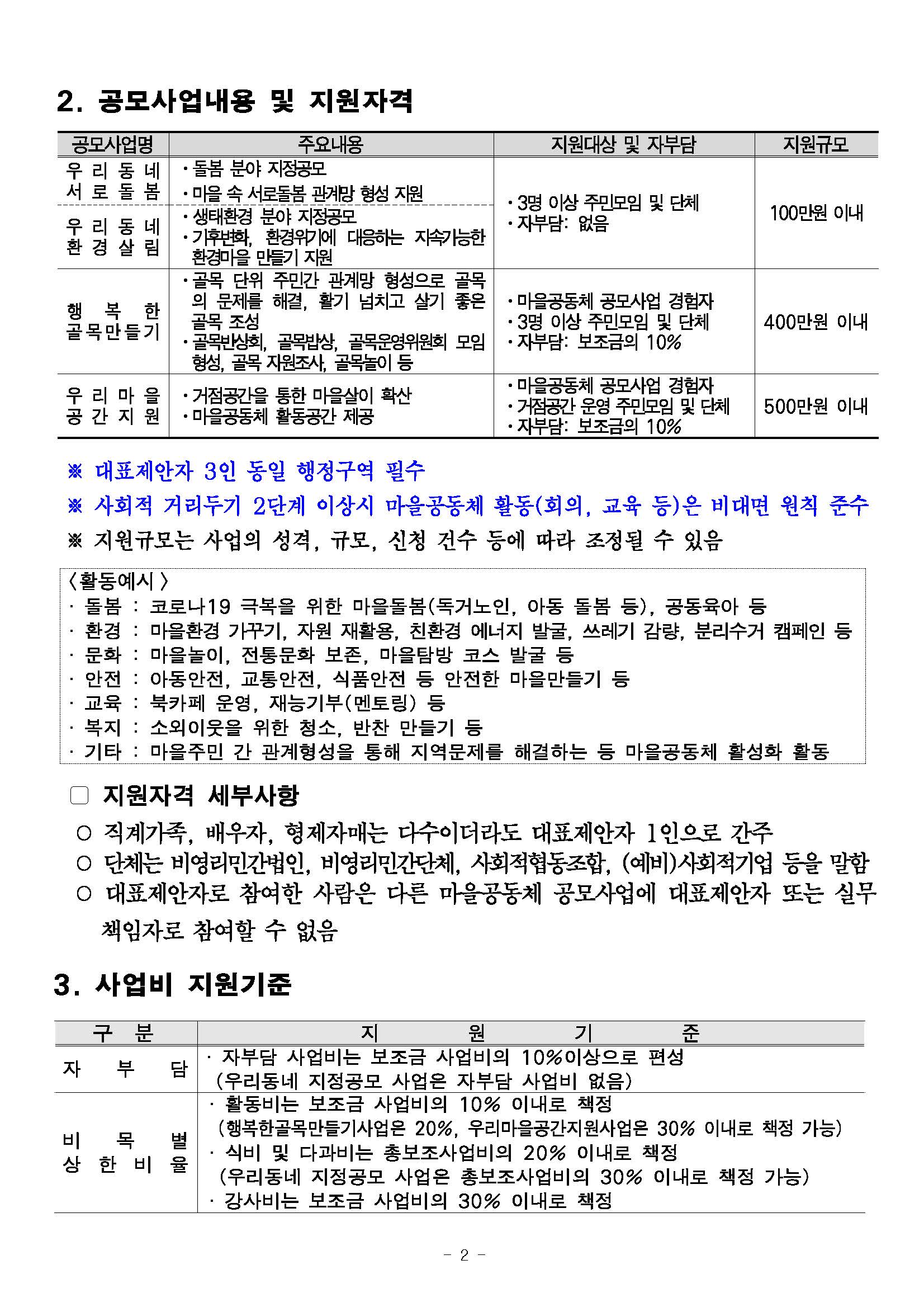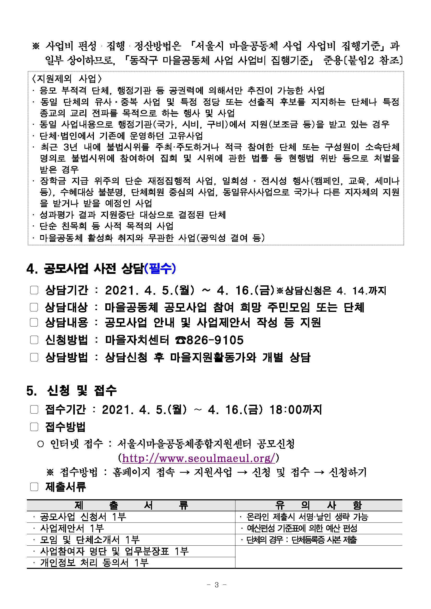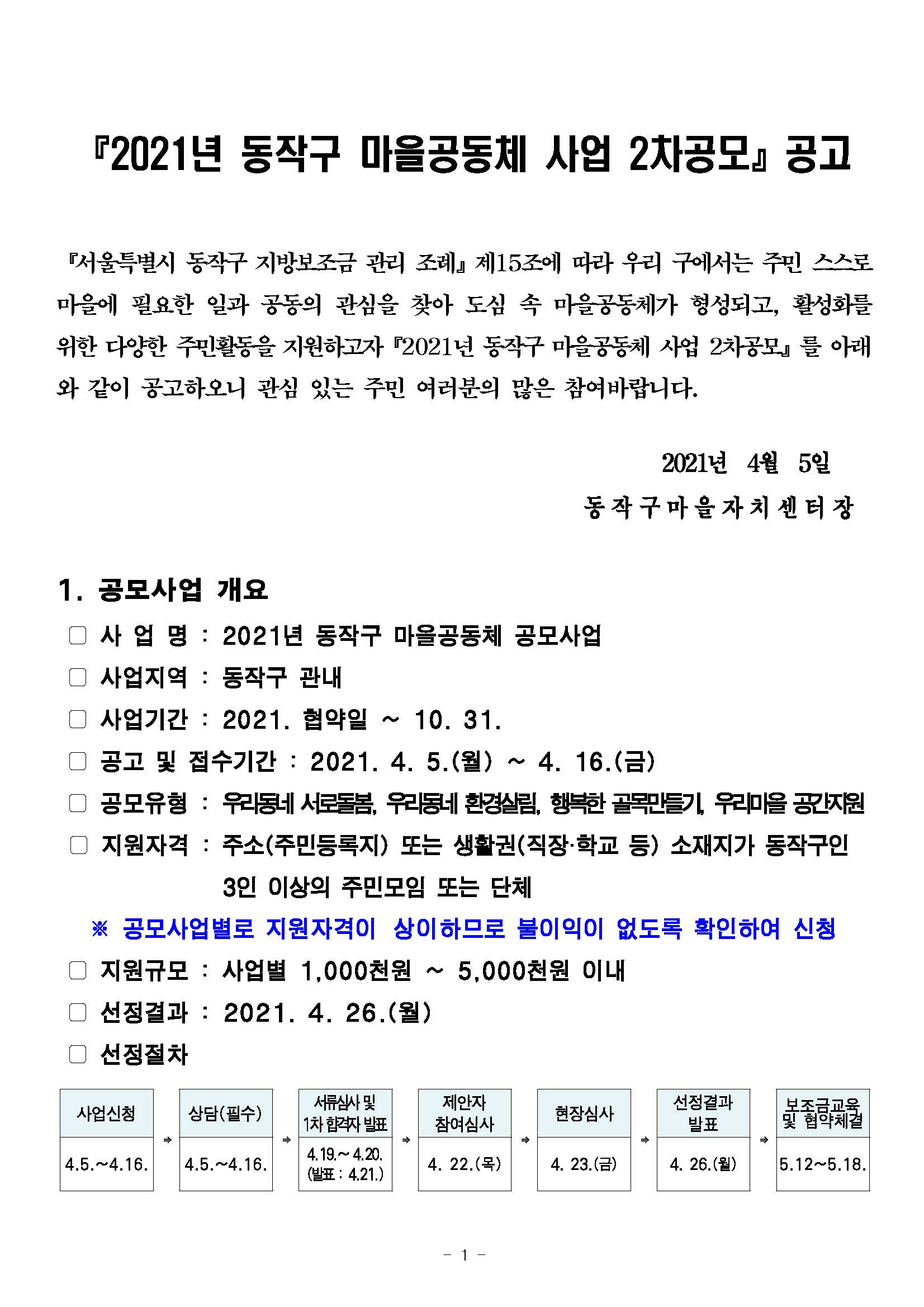 2021년 동작구 마을공동체 2차 공모사업 공고