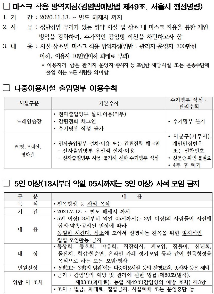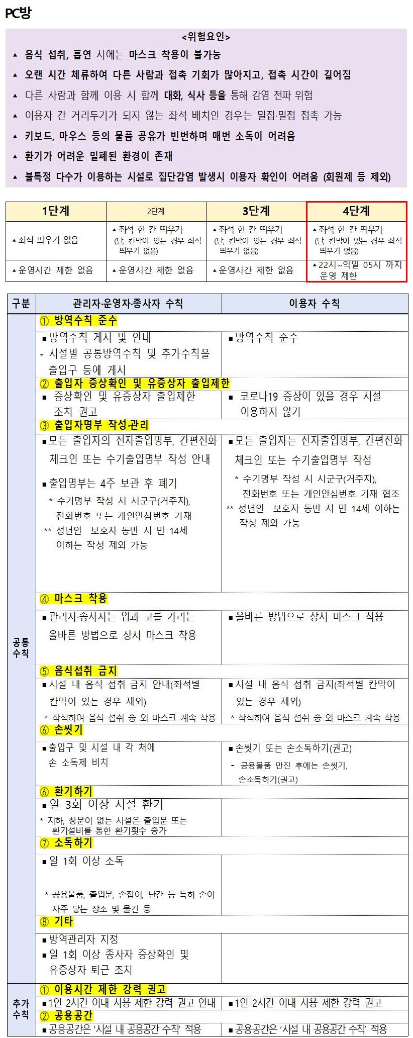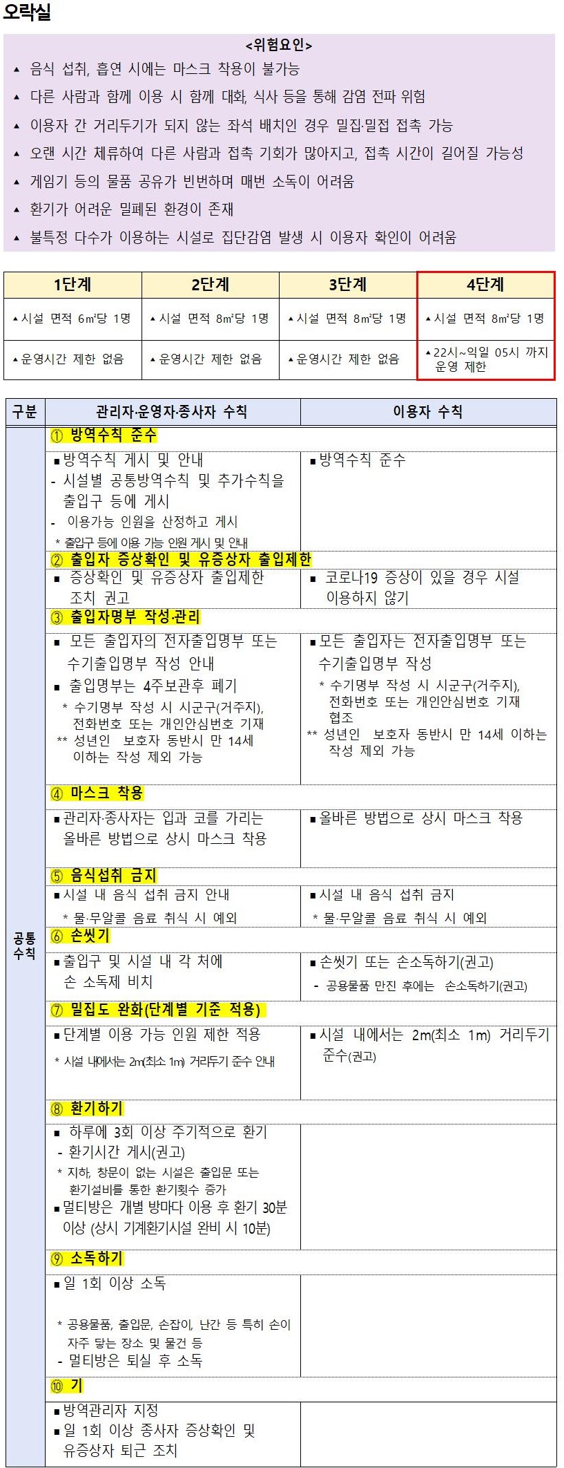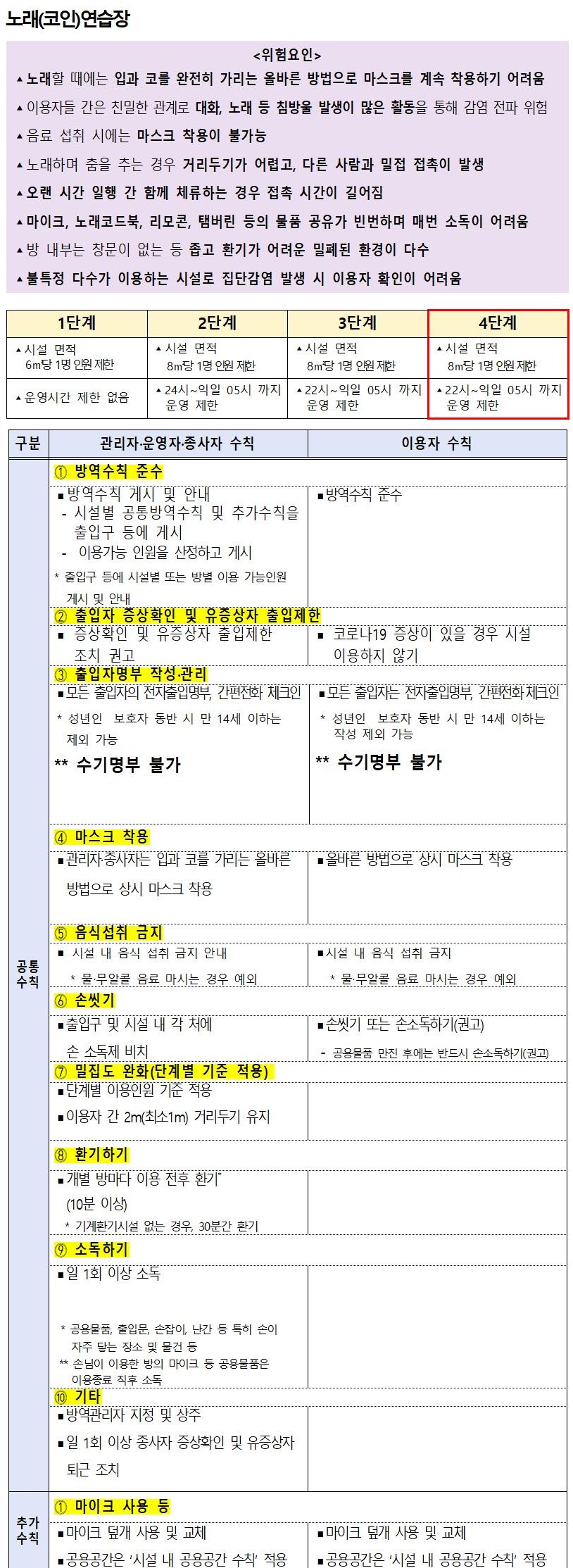 [방역지침 / 관리대장] (8.9.~8.22.) 사회적거리두기 4단계 연장 알림 - 방역지침, 관리대장 (노래연습장, PC방, 기타게임시설, 영화관)