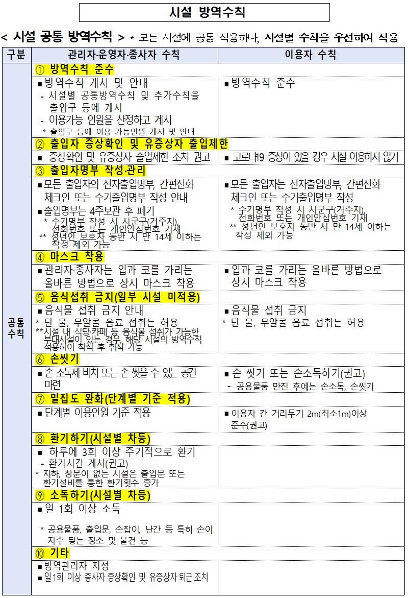 위반사례가 발생하지 않도록 방역지침을 철저히 준수하여 주시기 바랍니다.