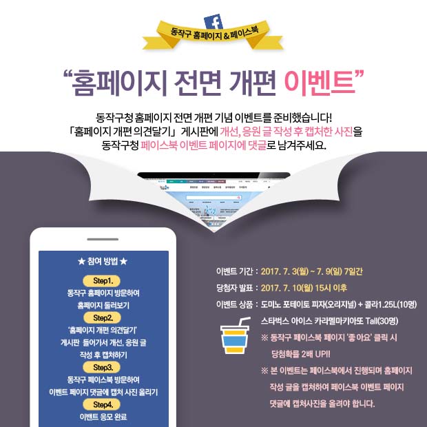 동작구 페이스북 방문하여 이벤트 페이지