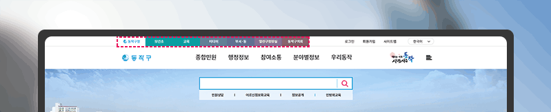 통일성 있는 홈페이지 구조 및 화면구성 5개 포털 홈페이지 접근용이성을 위한 탭형태 구조화