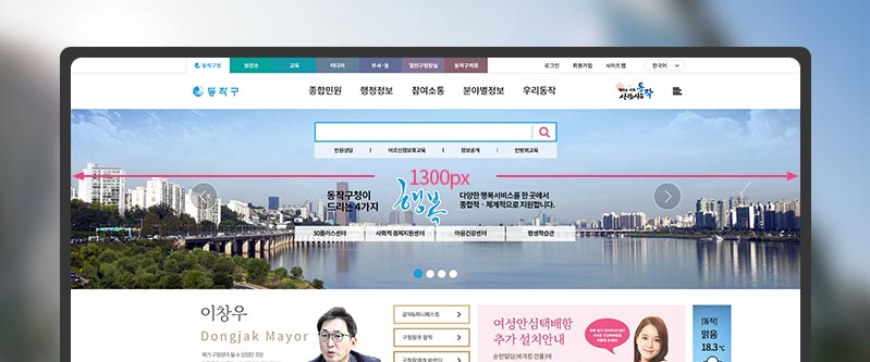 이용자 기기환경이 다양해지고, 넓어지는 추세를 고려, 기존 1,000px 개선 1,300px로 넓어진 해상도 제공 해상도를 넓히는 과정에서 글자크기를 높게 조정하고 깔끔한 디자인으로 개선