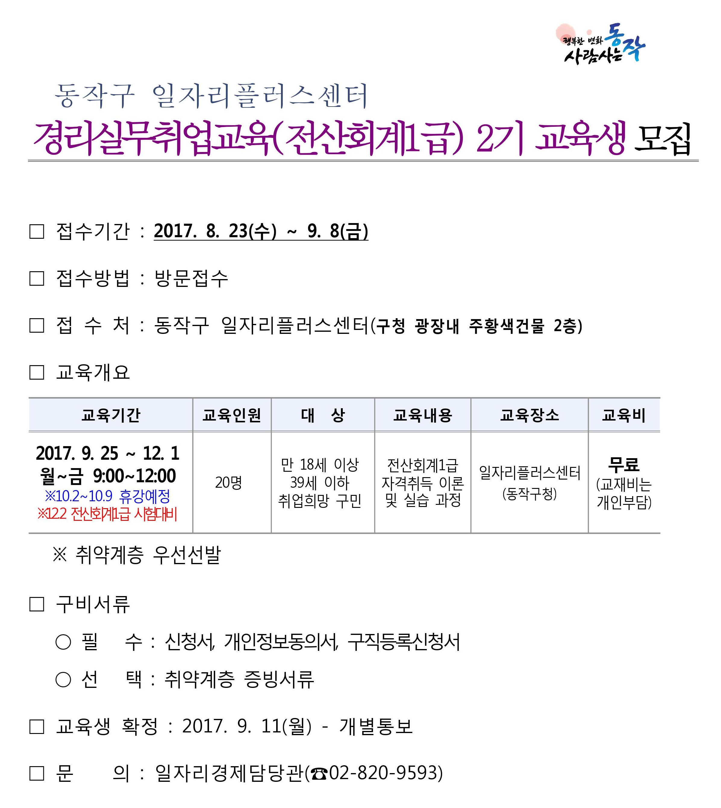 경리실무취업교육(전산회계1급) 2기 교육생 모집