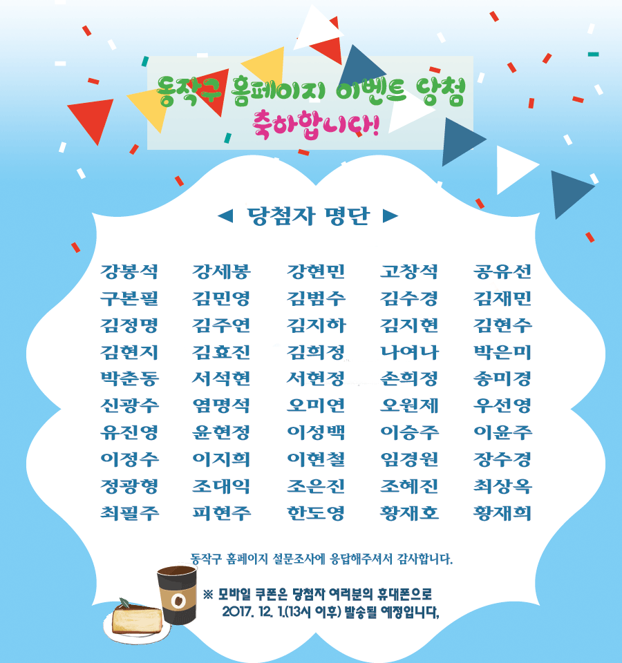 동작구 홈페이지 설문조사 이벤트 당첨자 여러분 축하드립니다.