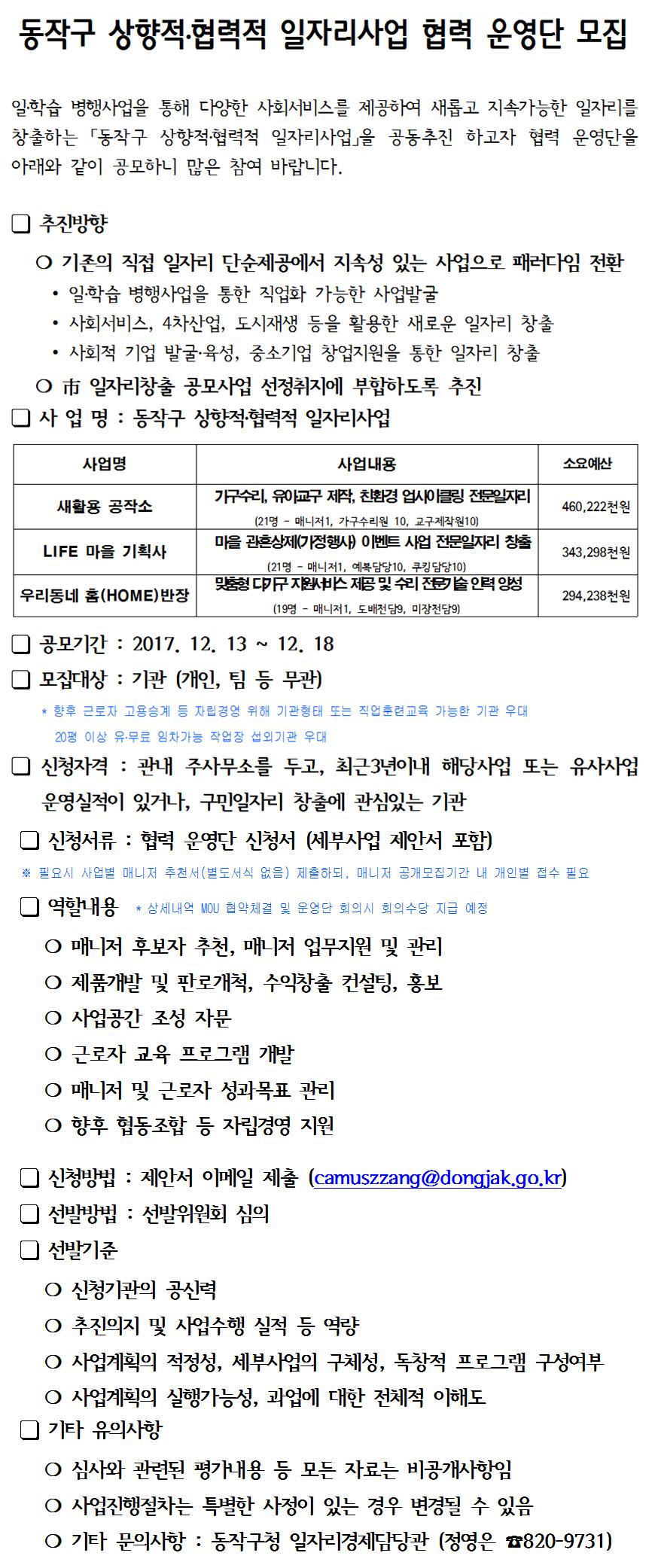 동작구 상향적․협력적 일자리사업 협력 운영단 모집