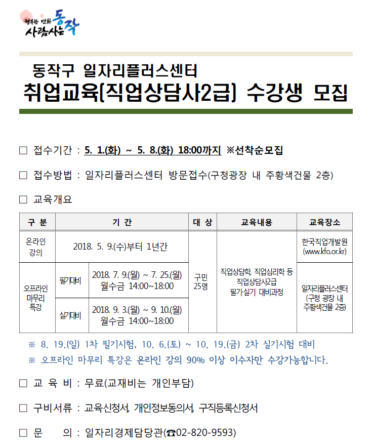 일자리플러스센터 취업교육(직업상담사2급과정) 수강생 모집