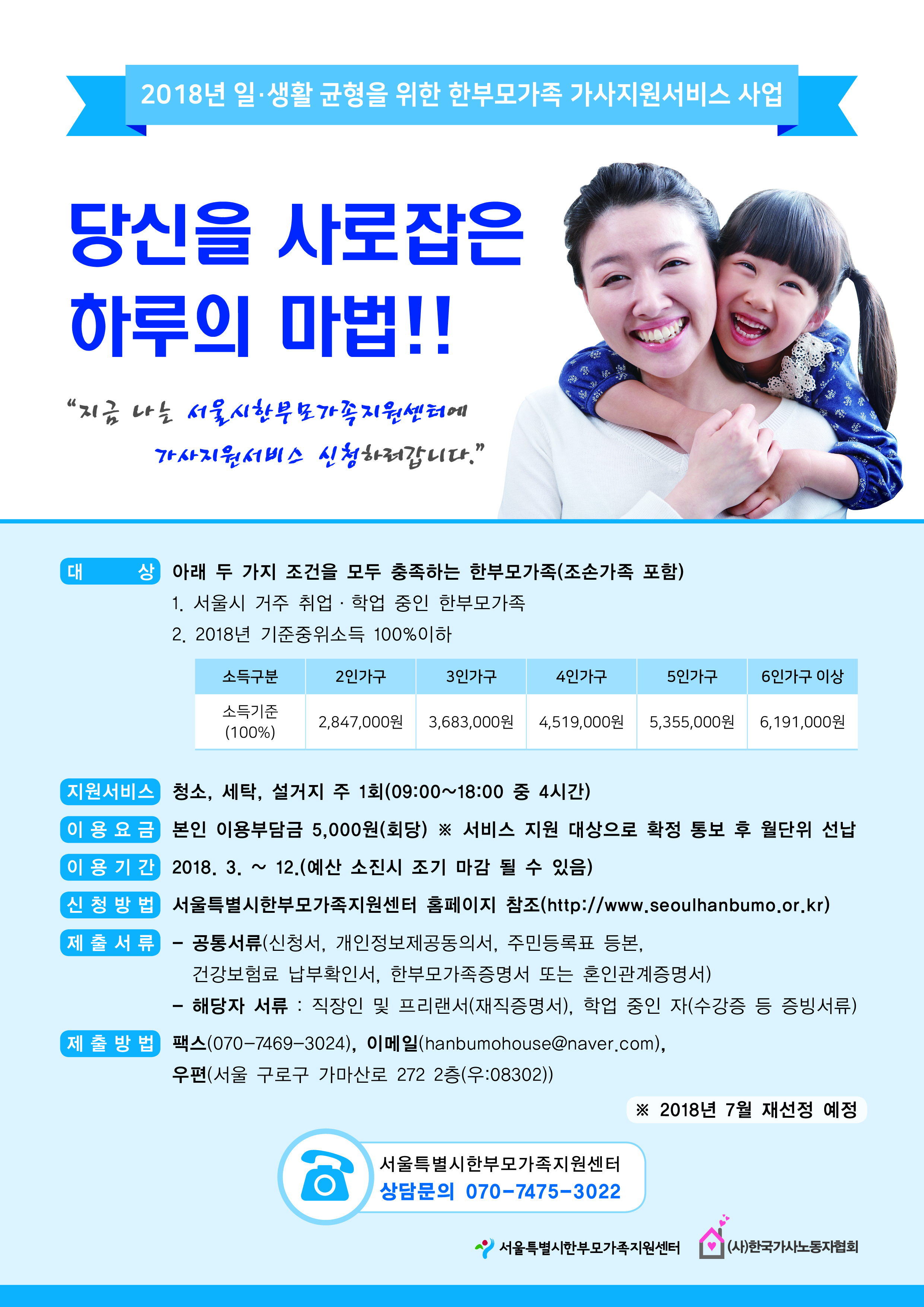 2018년 한부모가족‘가사지원 서비스사업’ 신청하세요