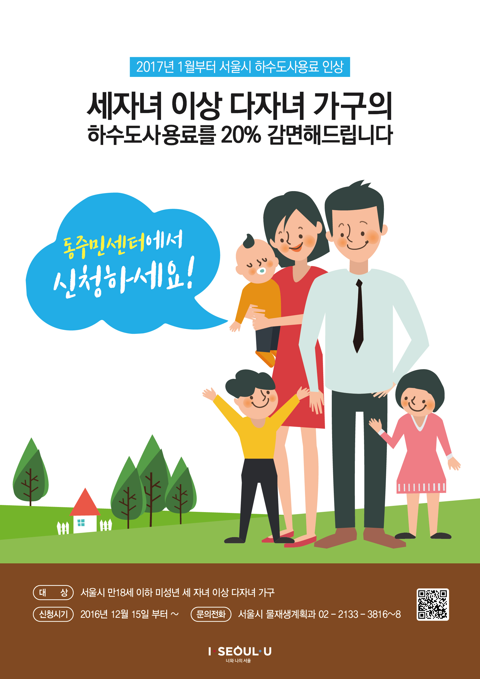 「다자녀가구 하수도사용료 감면」 신청 하세요