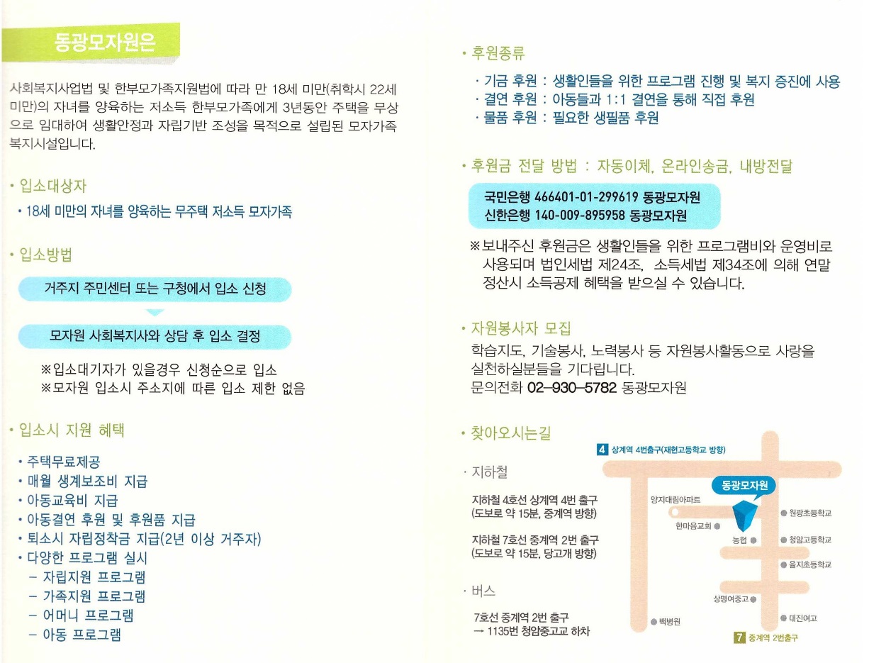 한부모가족(동광모자원) 복지시설 입소자 모집 안내