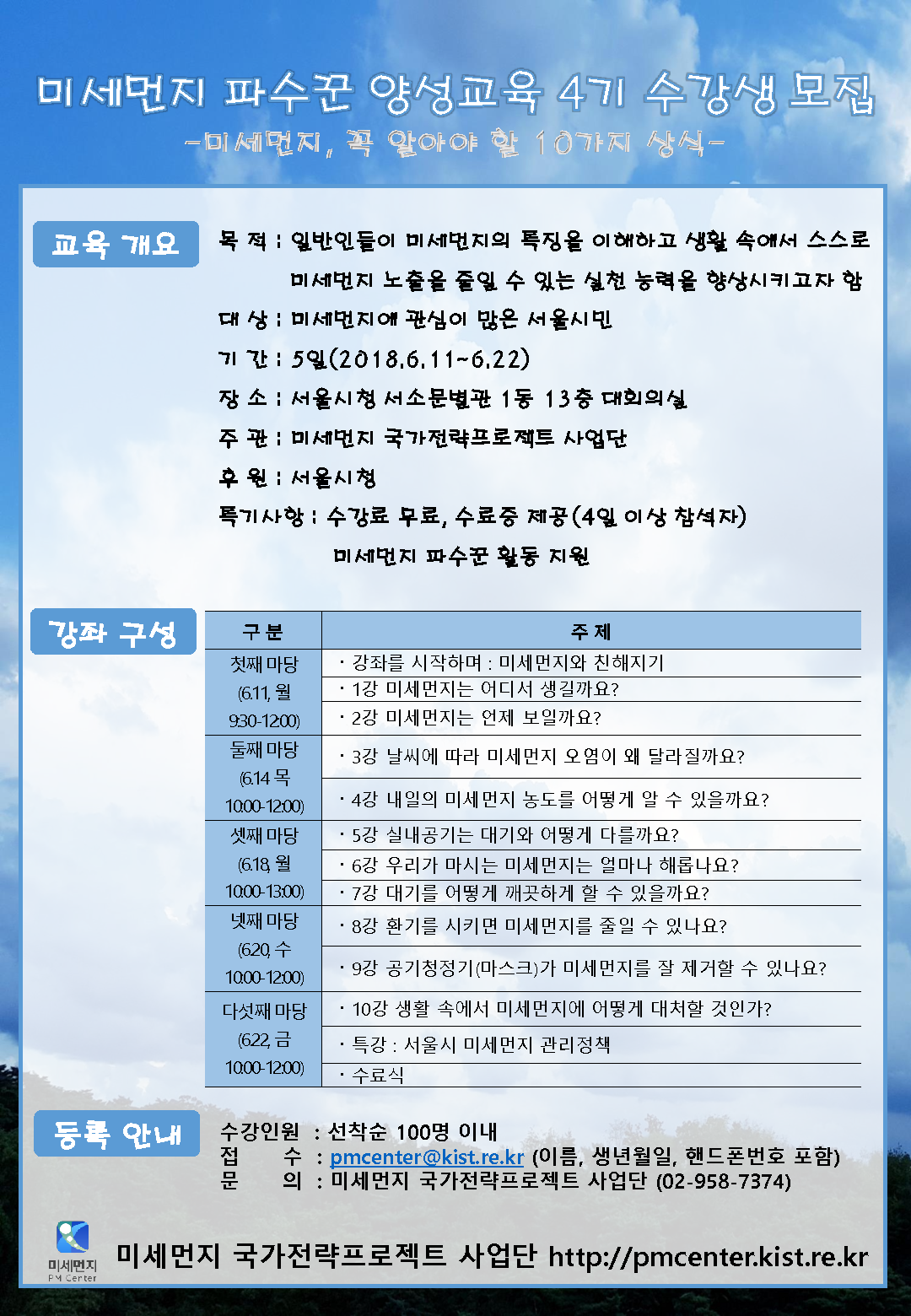 미세먼지 파수꾼 양성교육 4기 수강생 모집