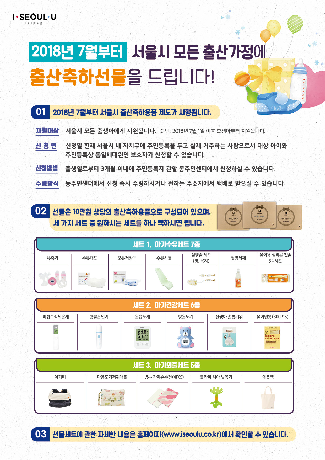서울시 출산축하용품 지원사업 안내(18.7.1. 일 시행)