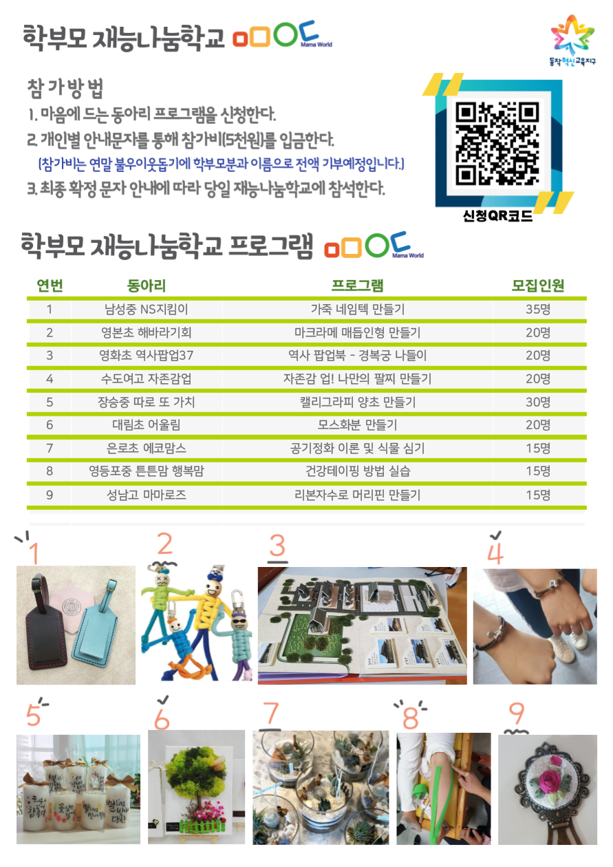 진행하는 학부모 재능나눔학교에 많은 신청 바랍니다.