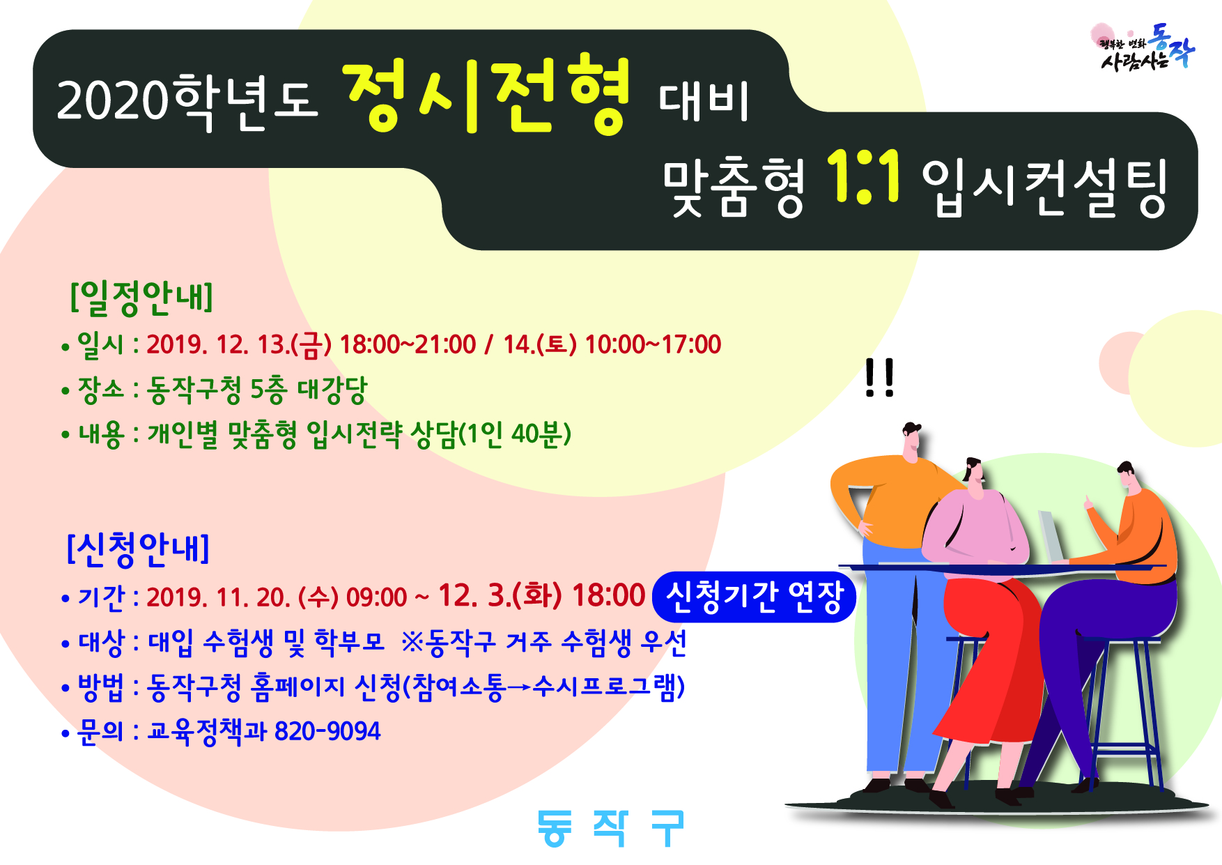 2020학년도 대입 정시대비 맞춤형 1:1 입시컨설팅 개최 안내(신청기간 연장)