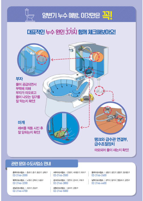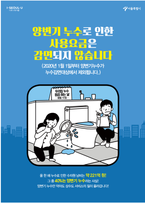 양변기 누수로 인한 사용요금은 감면되지 않습니다.