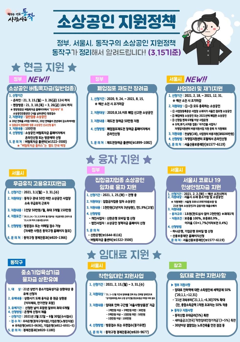 정부, 서울시, 동작구의 소상공인 지원정책 알려드립니다.(3.15기준)