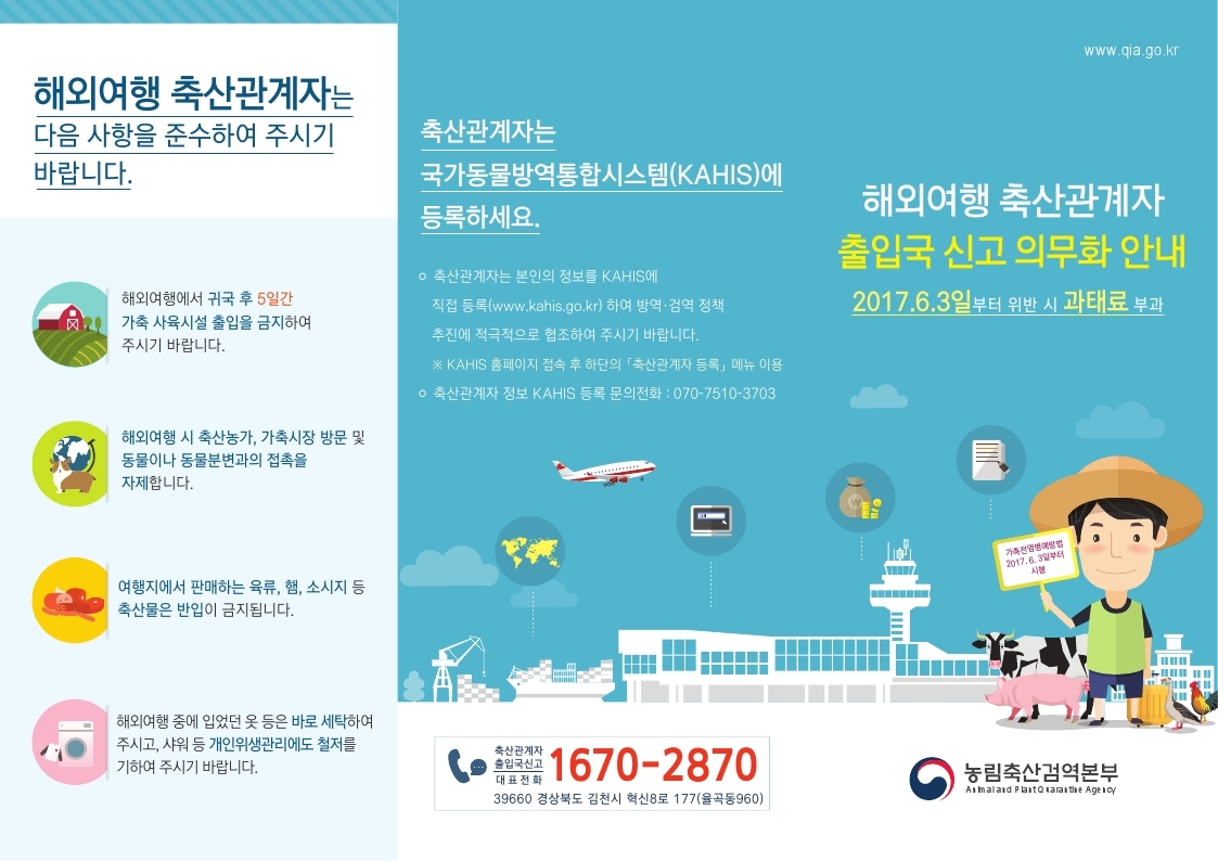 해외여행 축산관계자 출입국 신고 의무화 안내
