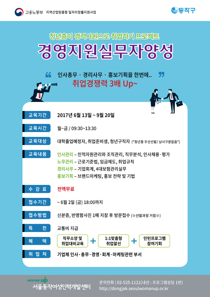 동작여성인력개발센터 [경영지원실무자 무료 교육생 모집]