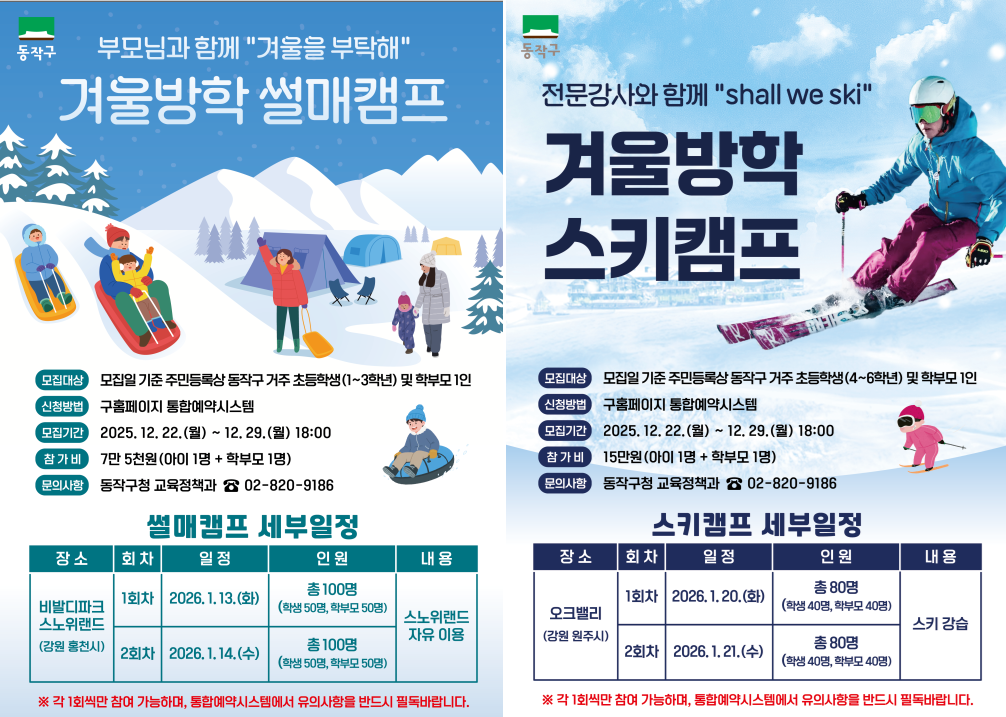 부모님과 함께하는 겨울방학 썰매스키캠프 참여자를 모집합니다.