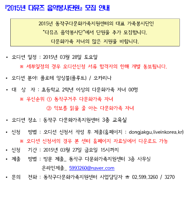『2015년 다뮤즈 음악봉사단원』모집 안내