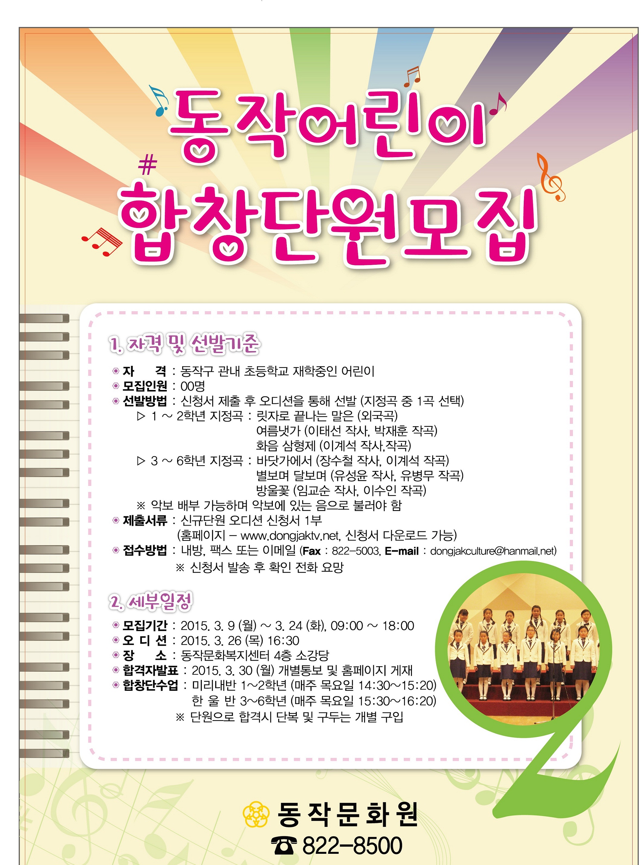 동작어린이합창단 신규단원 모집(동작문화원)