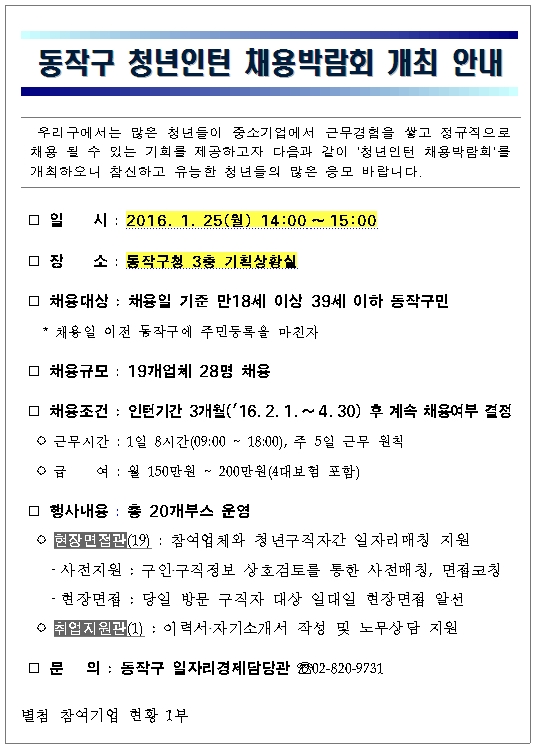 청년인턴 채용박람회 개최 안내