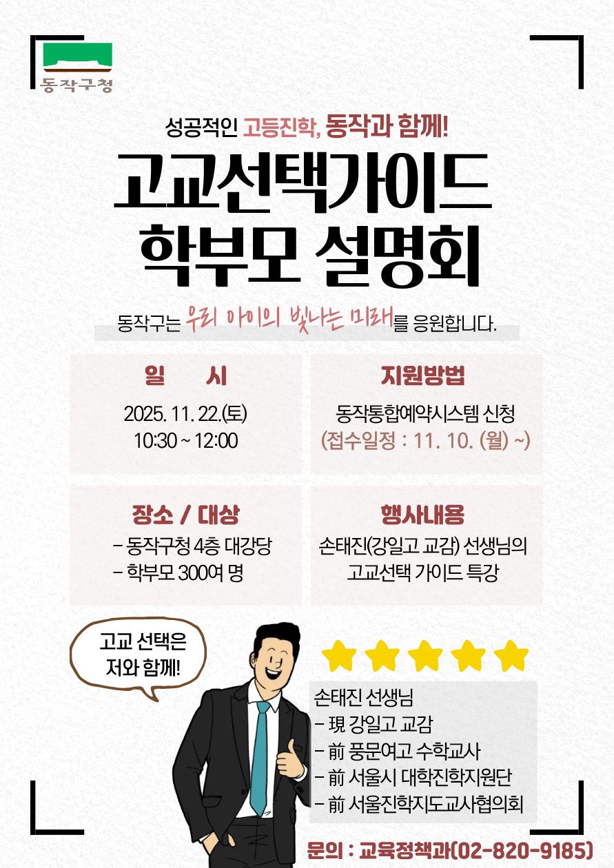 동작구에서는 학부모님들의 고등학교 진학에 대한 고민 해소를 돕고 학생과 학교의 특성을 고려하여
