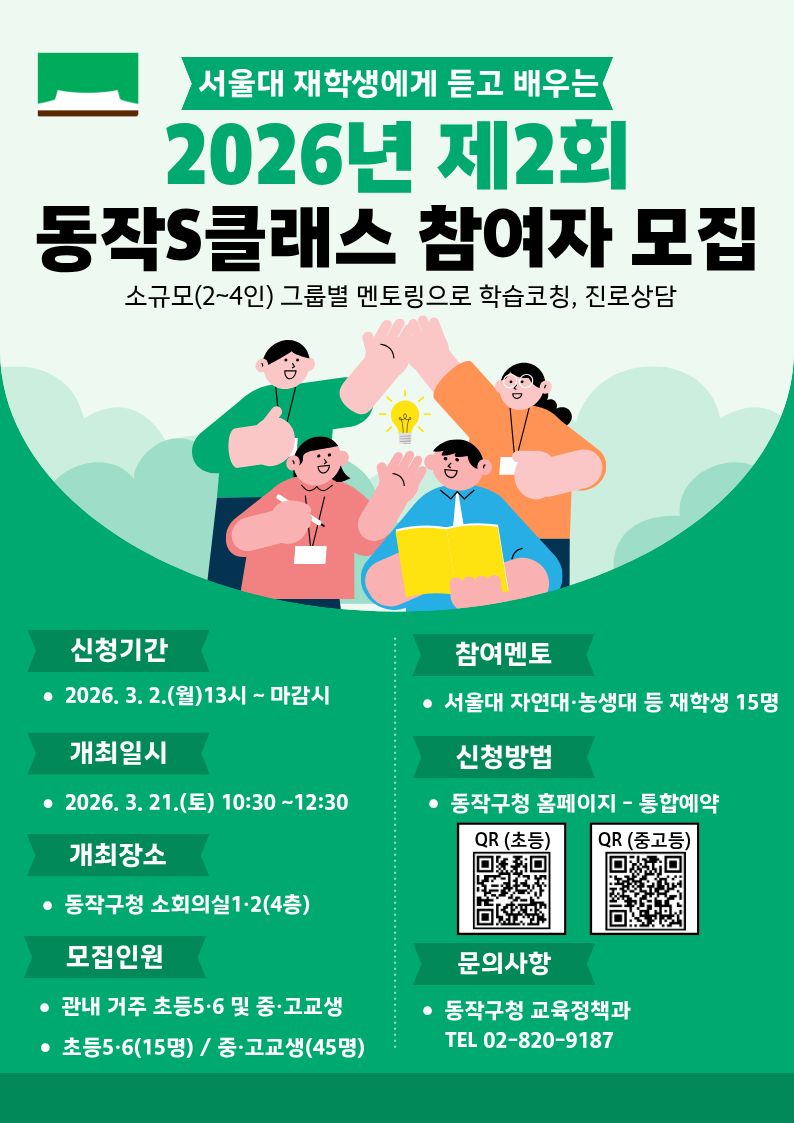 (선착순마감)서울대 재학생에게 듣고 배우는 2026년 제2회 동작S클래스 참여자모집