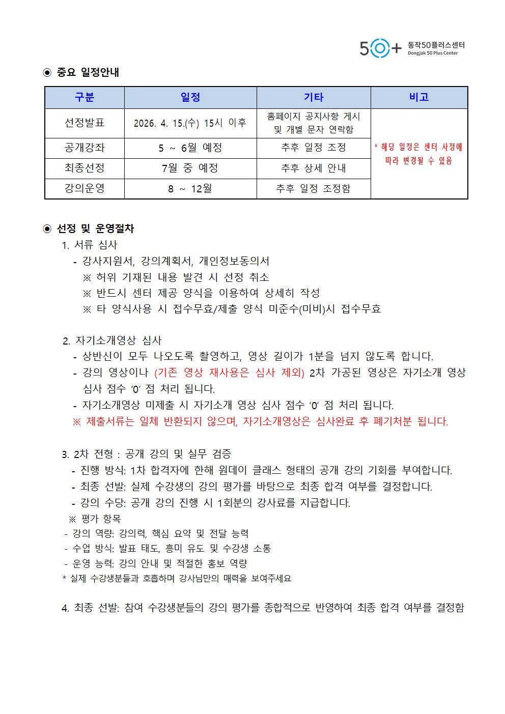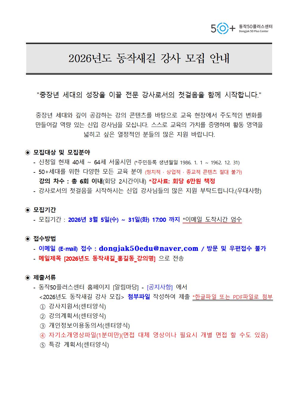 1. 2026년도 동작새길 강사 모집_강사 지원서_강의 계획서_원데이 클래스 강의 계획서_개인정보 동의서 .hwp