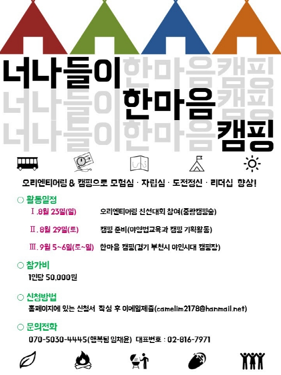 청소년 체험활동 프로그램 ’너나들이 한마음 캠핑’을 아래와 같이 안내드립니다.