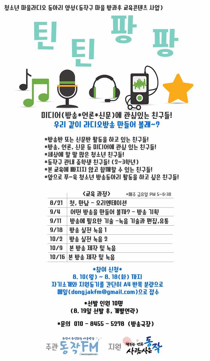 동작 FM 마을 라디오 동아리 양성 참여자 모집(2015. 동작혁신교육지구 마을 방과후 교육콘텐츠 사업)