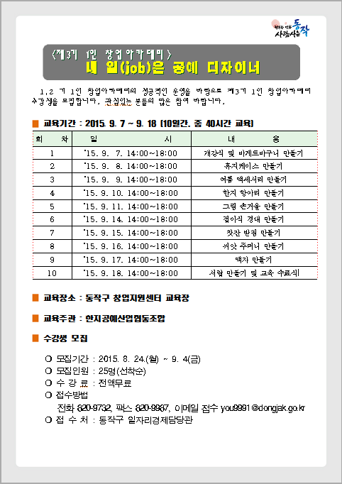 제3기 1인 창업아카데미 모집 안내