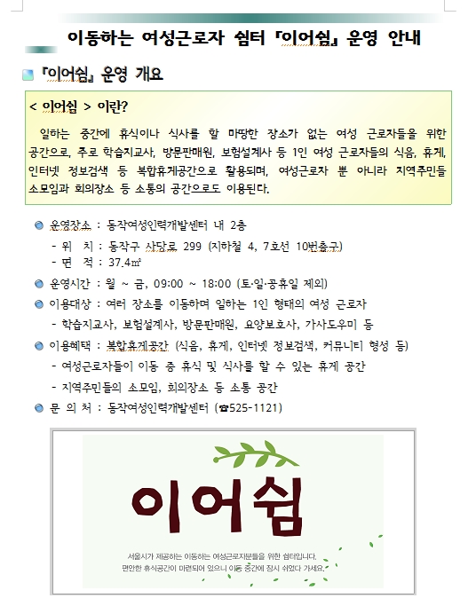 이동하는 여성근로자가 잠시 쉬어가는 곳, 이어쉼을 아시나요?