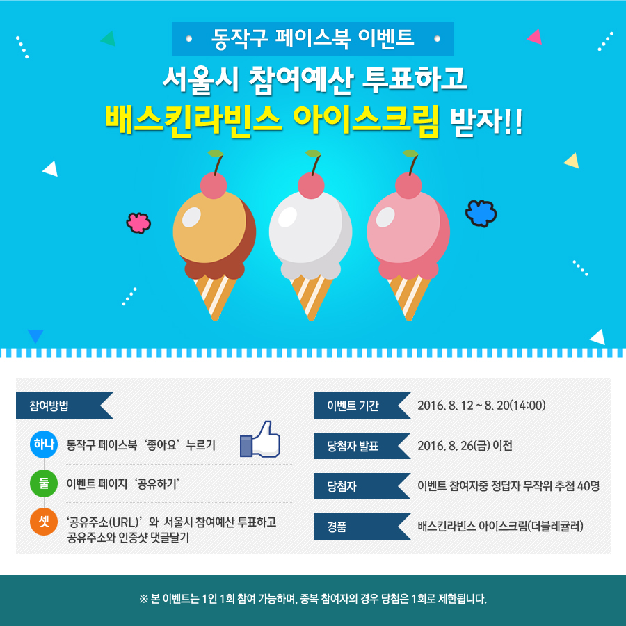 서울시 참여예산 투표하고 배스킨라빈스 아이스크림 받자!