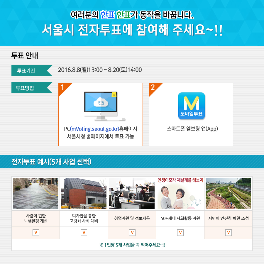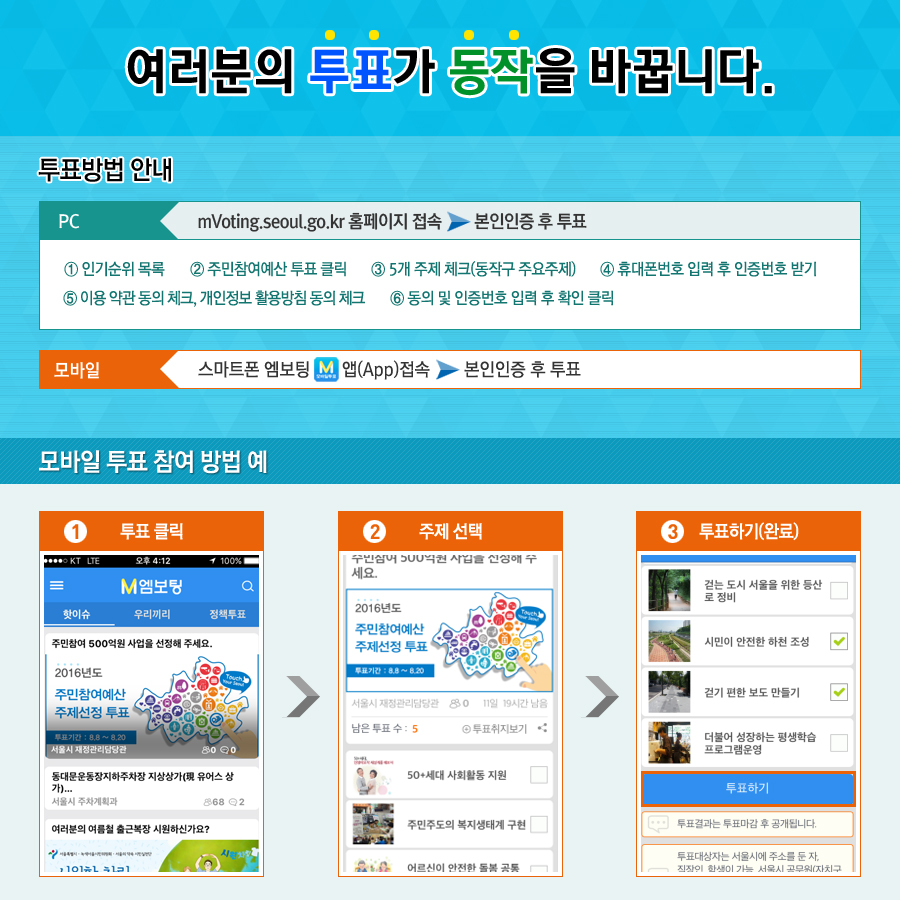 - P C : mVoting.seoul.go.kr 홈페이지 접속, 본인인증 후 투표